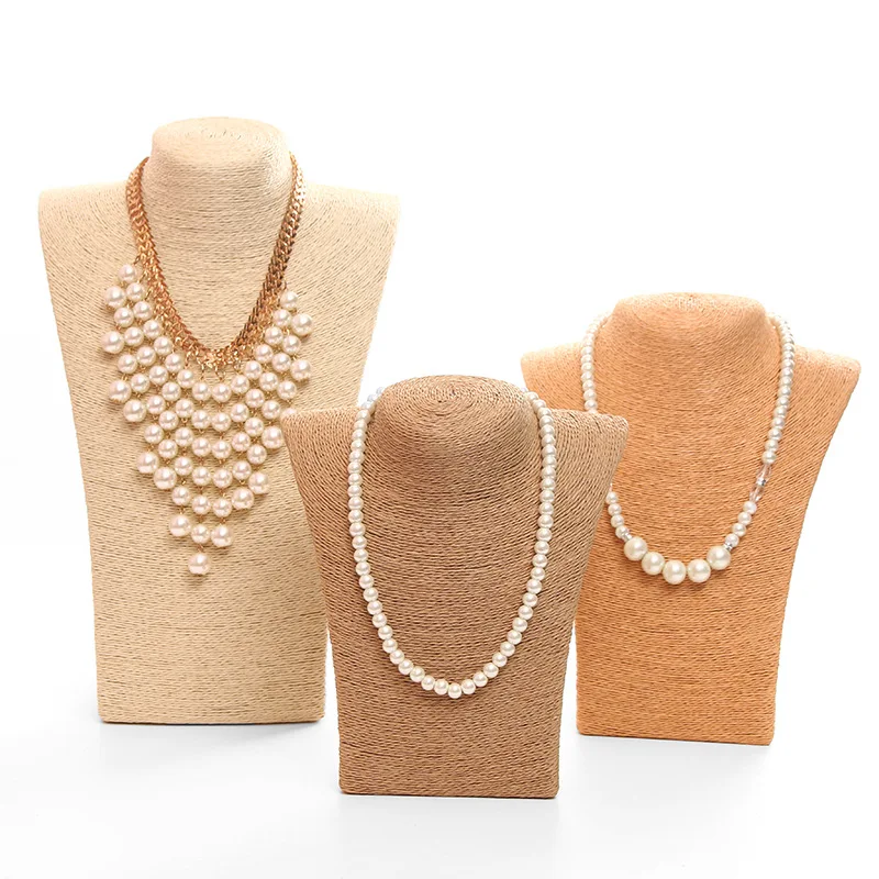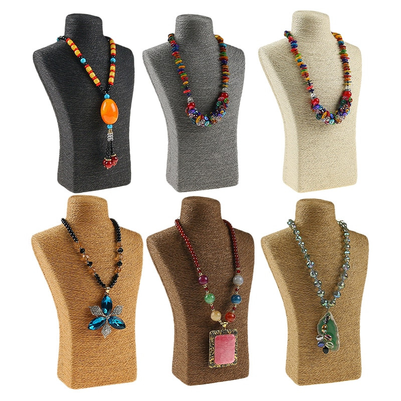 Us 10 93 45 Off Hemp Rope Bust Jewelry Holder Necklace Stand Display Jewelry Holder Organizer Necklace Display Stand Sieraden Houder In Jewelry