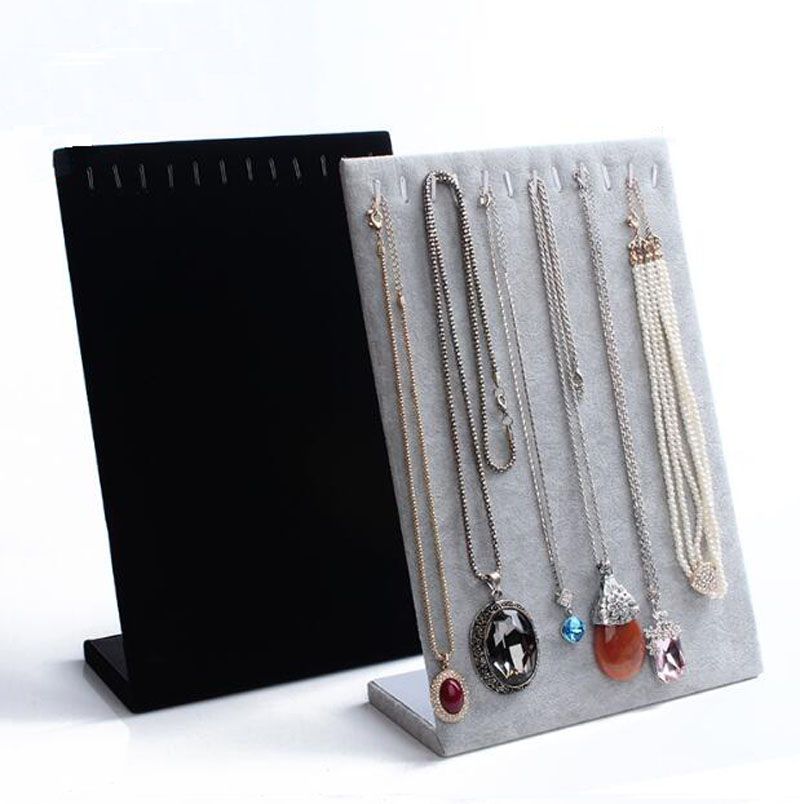 L Shape Velvet Necklace Jewelry Display Stand Shelf Showcase Pendant Organizer Holder Rack Stock