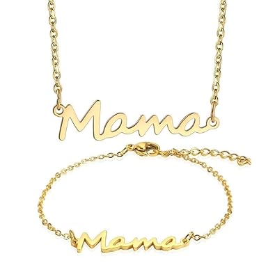 Dainty Mom Necklace For Women 18k Gold Plated Mom Birthday Gifts Mama Necklace And Bracelet Jewelry Set